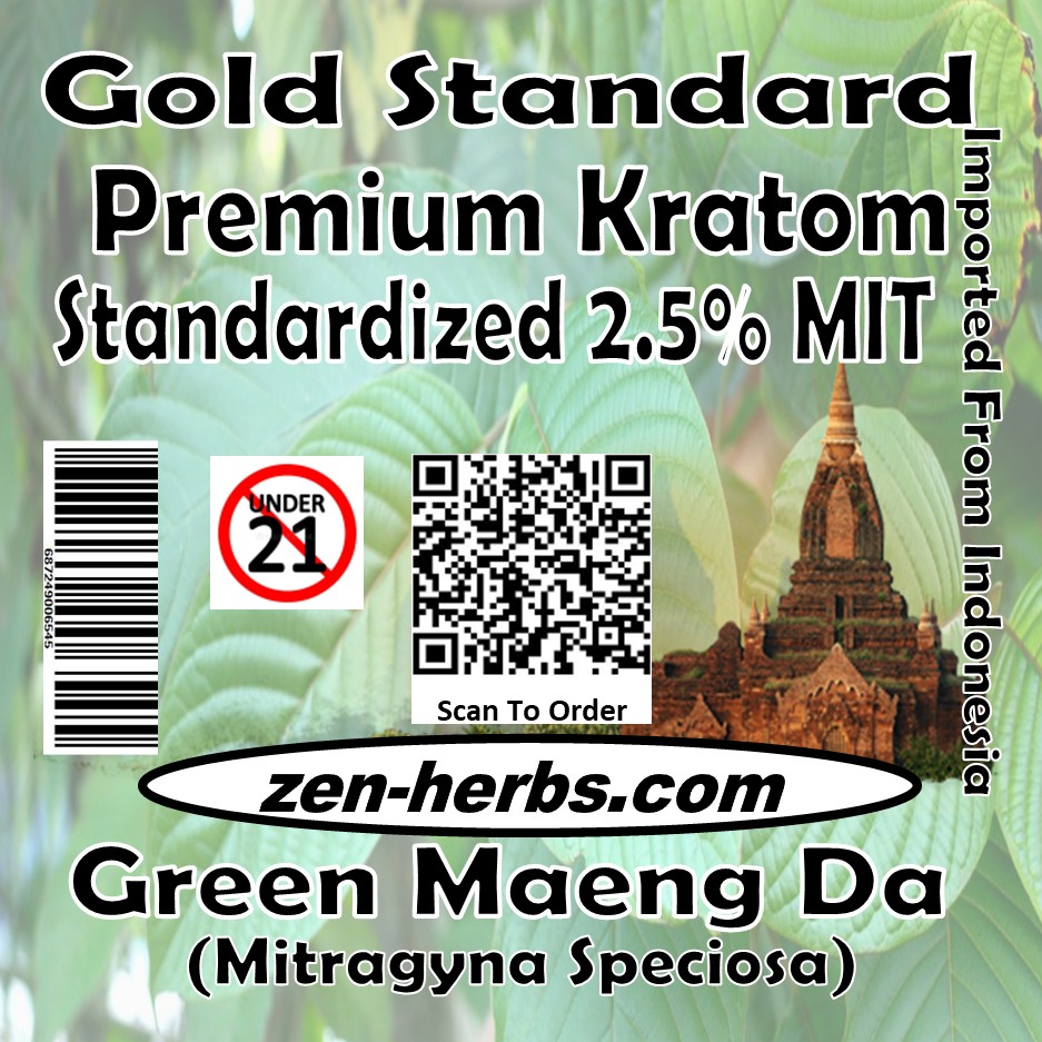 Our 2.5% standardized Green Maeng Da powder contains 40% more MIT, which is the active feel-good compound in Kratom.