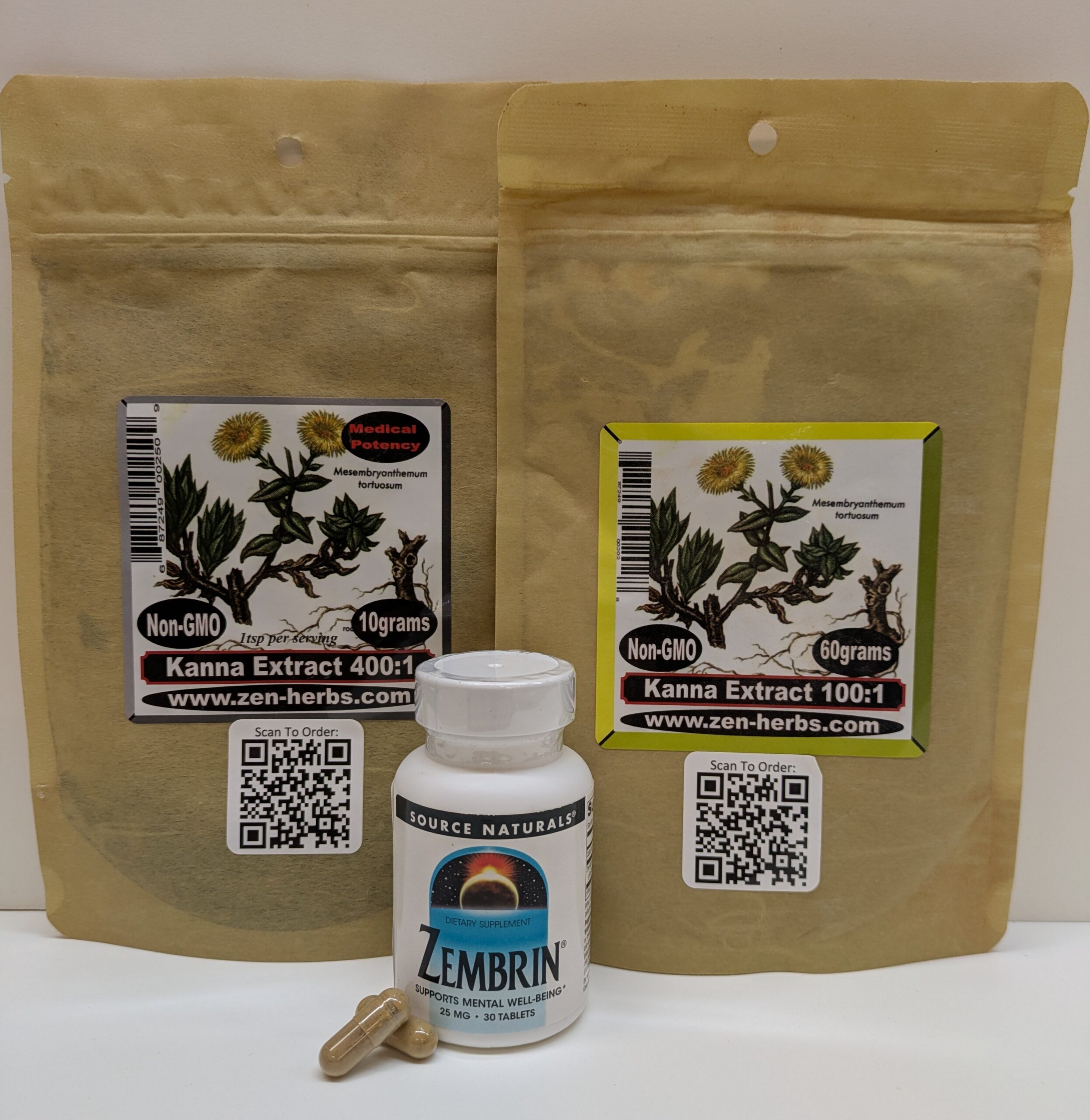 Kanna’s mood-lifting benefits can be attributed to a group of alkaloids in the plant that help the brain maintain its natural levels of serotonin, the chemical that nerve cells produce to regulate moods. In traditional folk herbalism, leaves from the plant have been chewed or used in teas and implicated in the amelioration of thirst, staving hunger, and decreasing fatigue. More recently, it has attracted attention for its possible utility in supporting and promoting a sense of wellbeing in healthy people. Sceletium tortuosum is known to possess many bioactive compounds such as mesembrine, mesembranol, mesembrenol, mesembrenone, alkaloid A4, chennaine and tortuosamine. It doesn’t take much kanna to maintain serotonin levels, working effectively as an SSRI alternative to treating depression. Recommended dose 250mg(1/4 tsp) – 500mg(1/2 tsp)